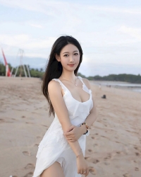 美女模特唐安琪白色长裙,赤脚踩在巴厘岛沙滩上随拍